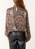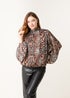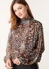 Blue Vanilla Brown Multi Animal Print Bubble Hem High Neck Blouse