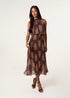 Blue Vanilla Brown Paisley High Neck Sleeveless Pleated Midi Dress
