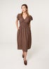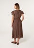 Blue Vanilla Brown Polka Dot Double Frill Shirred Midi Dress