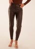 Blue Vanilla Brown PU Mid Rise Coated Skinny Jeans