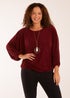 Blue Vanilla Burgundy Batwing Necklace Elasticated Hem Top