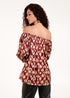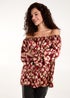 Blue Vanilla Burgundy Floral Ruched Sleeve Bardot Blouse