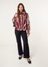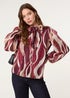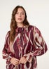 Blue Vanilla Burgundy Geometric Print Pussybow Metallic Top