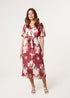 Blue Vanilla Burgundy Large Floral Wrap Midi Dress