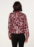 Blue Vanilla Burgundy Metallic Stripe Puffball Blouse