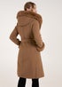 Blue Vanilla Camel Faux Fur Trim Double Breasted Coat
