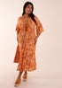 Blue Vanilla Curve Orange Elasticated V Neck Midi Dress