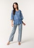 Blue Vanilla Denim Floral Lace Butterfly Sleeve Blouse