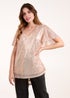 Blue Vanilla Gold Angel Sleeve V Neck Sequin Top
