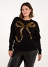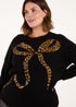Blue Vanilla Gold Curve Sequin Christmas Leopard Bow Jumper
