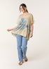 Blue Vanilla Gold Floral Shimmer Print Knitted Top