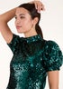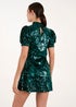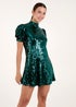 Blue Vanilla Green Puff Sleeve Sequin Dress