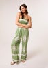Blue Vanilla Green Strapless Shirred Waist Jumpsuit