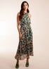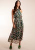 Blue Vanilla Green Wrap Halter Neck Pleated Midi Dress