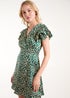 Blue Vanilla Green Wrap Ruffle Mini Dress