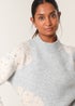 Blue Vanilla Grey Flower Diamante Detailed Knitted Jumper