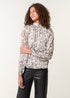 Blue Vanilla Grey Rhinestone Studded Snake Print Blouse
