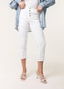 Jeans perfect for the summer! These cropped trousers are super cute teamed with a puff sleeve square neck blouse and sandals.