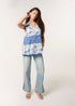 Blue Vanilla Ivory Crochet Mix Button Front Top