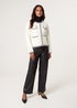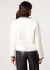 Blue Vanilla Ivory Fluffy Knit Contrast Trim Button Front Cardigan