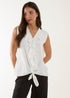 Blue Vanilla Ivory V Neck Ruffle Top with Knot