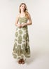 Blue Vanilla Khaki Abstract Strappy Button Front Maxi Dress
