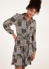 Learn moreCombining autumn tones and a variety of funky, bold abstract prints to create a patchwork effect. This button front shirt shirred dress teamed with ankle heeled boots provides a trend worthy outfit.