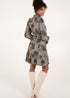 Combining autumn tones and a variety of funky, bold abstract prints to create a patchwork effect. This button front shirt shirred dress teamed with ankle heeled boots provides a trend worthy outfit.