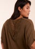 Blue Vanilla Khaki Curve Floral Crochet Back Top