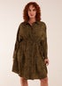Blue Vanilla Khaki Curve Leopard Shirt Dress
