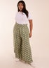Blue Vanilla Khaki Curve Shirred Wide Leg Aztec Trouser