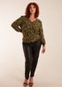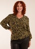 Blue Vanilla Khaki Curve Wrap Front Leopard Print Top