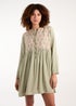 Blue Vanilla Khaki Embroidered Tunic Dress