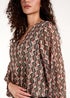 Blue Vanilla Khaki Geometric Print V Neck Bubble Hem Top
