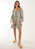 Blue Vanilla Khaki Lace Trim Tunic Dress