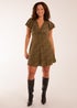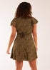 Blue Vanilla Khaki Leopard Print Wrap Ruffle Mini Dress