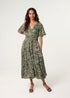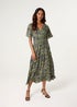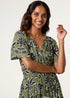 Blue Vanilla Khaki Notch Neck Elastic Tropical Print Dress