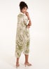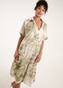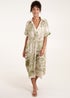 Blue Vanilla Khaki Palm Leaf Open Collar Dress