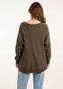 Blue Vanilla Khaki Pocket Slash Neck Jumper