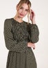 Blue Vanilla Khaki Polka Dot Shirred Cuff Sleeve Midi Dress
