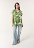 Blue Vanilla Khaki Round Neck Floral Top