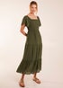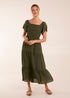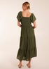 Blue Vanilla Khaki Square Neck Flutter Sleeve Dress