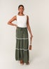 Blue Vanilla Khaki Tape Zig Zag Tiered Maxi Skirt