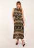 Blue Vanilla Khaki Tile Print High Neck Sleeveless Dress