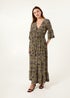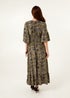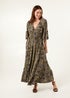 Blue Vanilla Khaki Tropical Print Elasticated Neck Shirred Waist Maxi Dress
