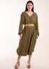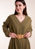 Blue Vanilla Khaki V Neck Long Sleeve Dress With Belt