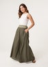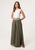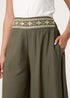 Blue Vanilla Khaki Wide Leg Embellished Linen Trousers