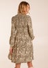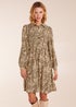 Blue Vanilla Khaki Zebra Shirred Long Sleeve Mini Shirt Dress
