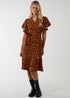 Make a statement this season with this leopard print dress! With a wrap front, tie waist and frill sleeves that add a refined element to the dress, complete your look by matching with wedge shoes.
