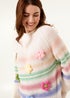 Blue Vanilla Multi Colourful 3D Flower Jumper With Stripes